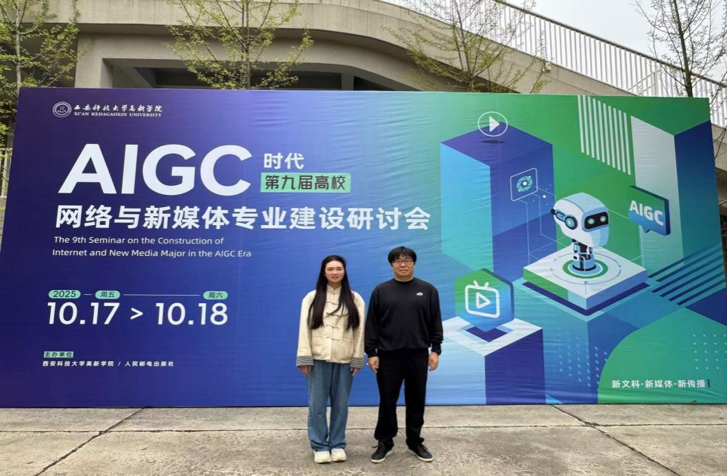 2025年10月17日至18日,AIGC时代第九届高校网络与新媒体专业建设研讨会在西安科技大学高新学院召开。人文学院副院长(主持工作)汪永奇、网络与新媒体专业负责人李巧苗参会。
