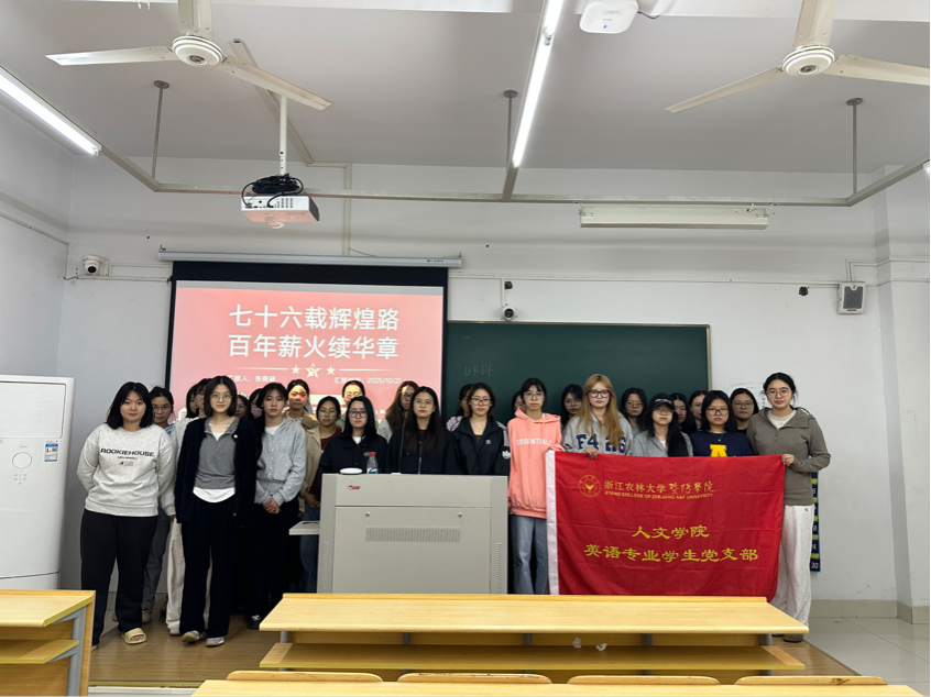 英语专业学生党支部主讲人张雨涵同志以时间顺序梳理新中国七十六年发展脉络,从初期探索到新时代变革,着重解读“奋斗”的核心意义。同时要以实际行动践行使命,在专业学习中强本领、在社会实践中献力量、在创新探索中助发展,为国家华诞献礼。二个环节为Question and Answer。问答环节中,党内同志和入党积极分子积极参与,进一步加深了对“百年奋斗薪火传承”的理解。