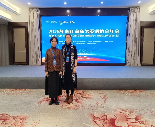 11月7日至9日,2025年浙江省商务英语协会年会暨“固本・拓新・致远:商务英语专业数智赋能与全球胜任力构建”研讨会在衢州学院举行。我院英语专业窦艳、何芳两位老师应邀参会,与全省 26 所高校及多家企业的80余位专家学者齐聚一堂,共话数智时代商务英语专业发展新方向,为我院英语专业高质量发展汲取宝贵经验。