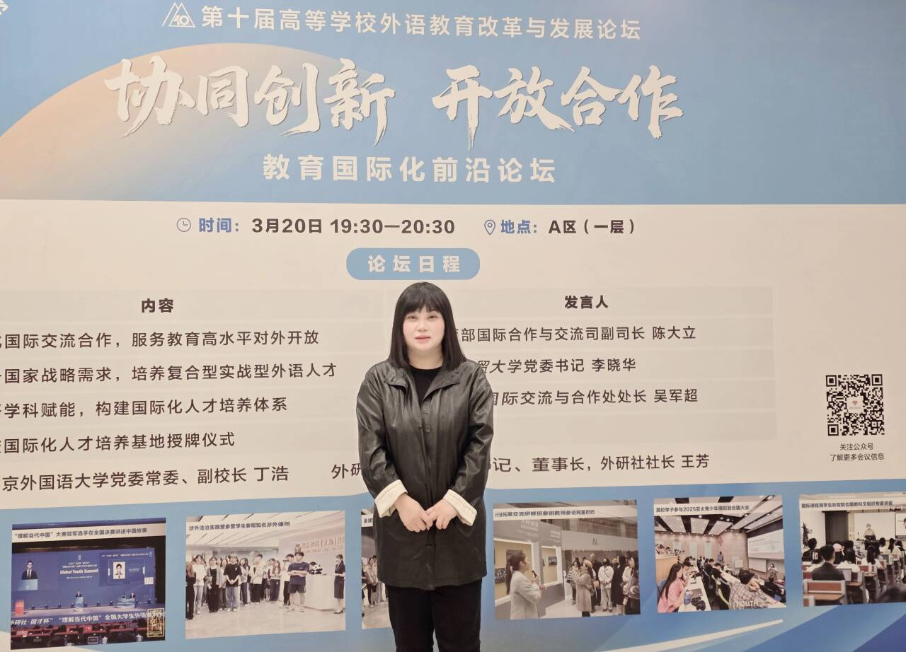 2026年3月21日至22日,第十届高等学校外语教育改革与发展论坛在北京召开。论坛由北京外国语大学中国外语与教育研究中心、外语教学与研究出版社承办,我院公共外语教研部滕红艳老师受邀参会。