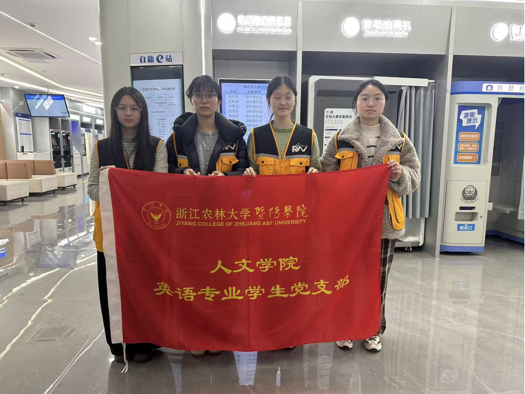 英语专业学生党支部的志愿者们深入行政服务中心,在自助服务区为群众提供身份证受理、自助拍照等高频业务的全流程指导。他们耐心协助市民完成操作,不仅提升了服务意识,更深化了对政务服务的认知。