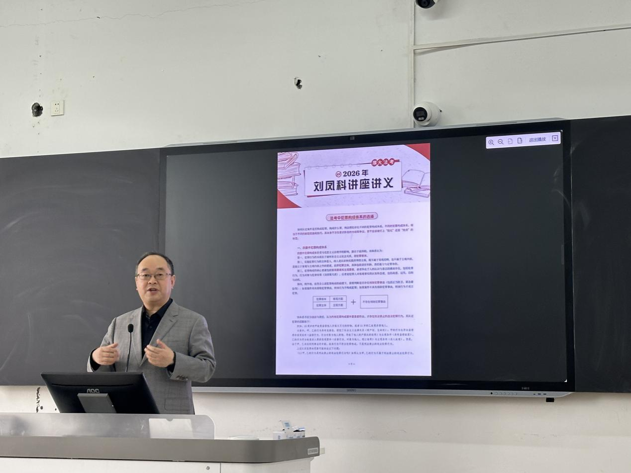 12月30日,浙江农林大学暨阳学院人文学院在人文1513教室举办法考备考专题讲座。本次讲座由厚大法考讲师、北京工商大学副教授刘凤科主讲,主题为“马工程教材规范下如何备战2026年法考刑法”。人文学院法学专业负责人王思远主持,法学专业本科生参加。