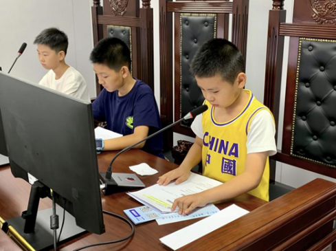 “现在开庭!”伴随一声清脆的法槌,7月16日上午,诸暨市飨街童“YANG”幸福爱心托班迎来一堂别开生面的普法课。诸暨市司法局、诸暨市总工会、诸暨市和暖社会工作服务中心携手浙江农林大学暨阳学院“1+枫行”暑期社会实践团队,把一起真实的未成年人消费纠纷改编成沉浸式模拟法庭,借助AI法官“枫枫”和“枫桥调解”机制,让30多名孩子在角色扮演中体验法律的温度与力量。